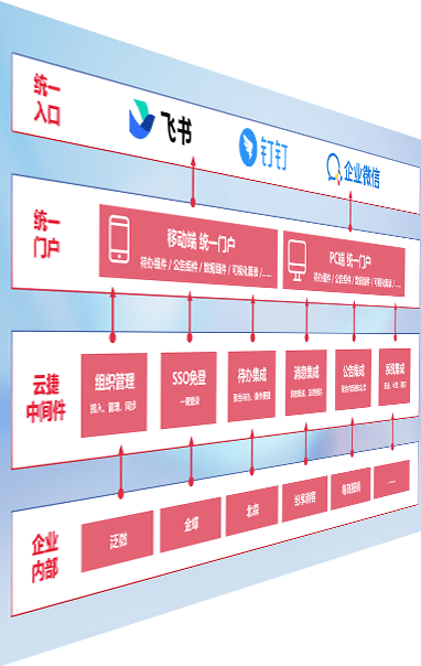 对协作平台提供支持服务,,,支持企业应用与协作平台对接,,,,包含组织同步、、消息集成、、、待办集成等。。支持目前主流的协作平台:钉钉、、、企微和飞书。。。